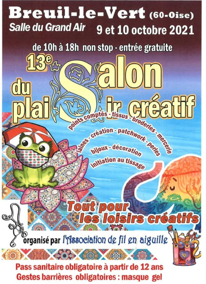 • Les samedi et dimanche 09 et 10 octobre 2021 : 13ème salon du Plaisir Créatif, salle du Grand Air  à Breuil le Vert (60), de 10h à 18h.