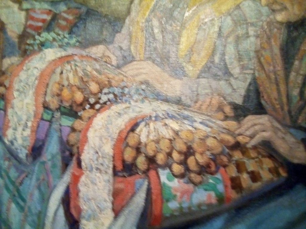 Nous avons donc étudié la dentelle sur les peintures et Madame la Conservatrice nous a montré les ouvrages en dentelle que possède le château.